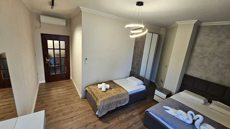 Die Unterkunft Sky Apartaments city center befindet sich im Zentrum von Tirana, nur 600 m vom Skanderbeg-Platz entfernt. Nahegelegene Sehenswürdigkeiten sind die ehemalige Residenz von Enver Hoxha, das House of Leaves und der Rinia Park. Der Flughafen Tirana liegt 15 km entfernt.