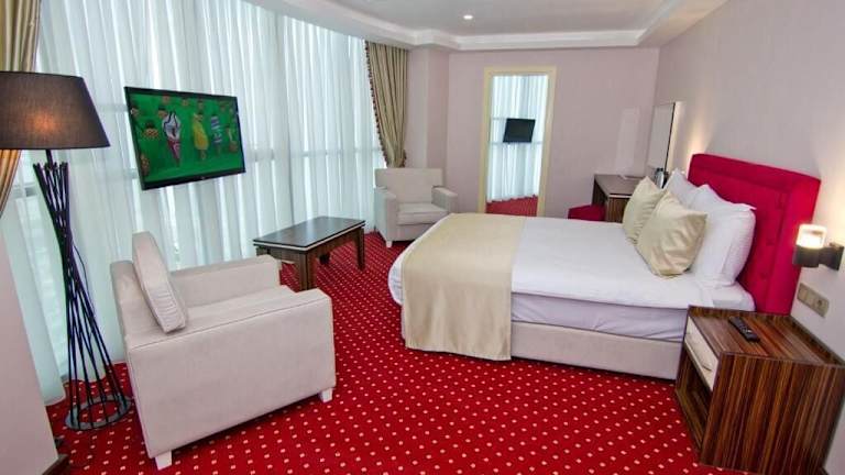 Die Zimmer sind mit Klimaanlage, Heizung, einem Safe, einer Minibar sowie Unterhaltungsmöglichkeiten wie Telefon, TV-Gerät und kostenlosem WiFi ausgestattet. Hausschuhe, Bademäntel und ein Haartrockner finden Gäste im Badezimmer, das mit Dusche und Badewanne versehen ist. Zusätzliche rollstuhlgerechte Zimmer mit barrierefreiem Bad sind ebenfalls verfügbar. Es stehen Familien- und Nichtraucherzimmer zur Auswahl.