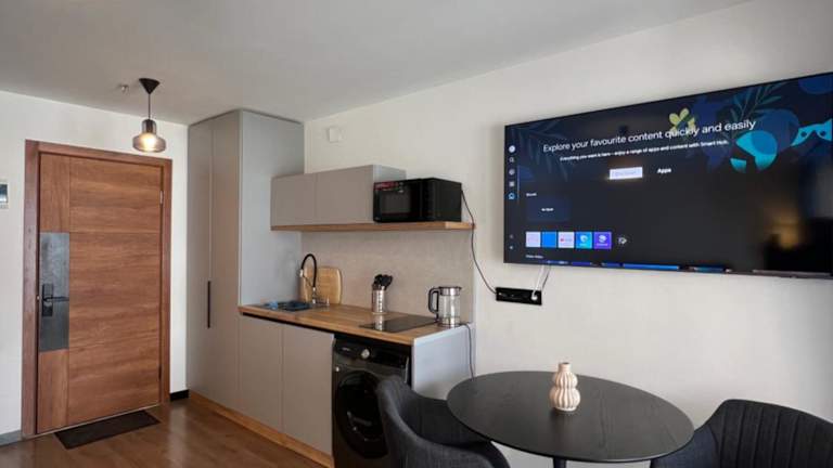 Die Ferienwohnung Skyline Retreat Marshall Gudauri bietet eine heimelige Atmosphäre und ist ideal für Gäste, die die Berglandschaft geniessen möchten.