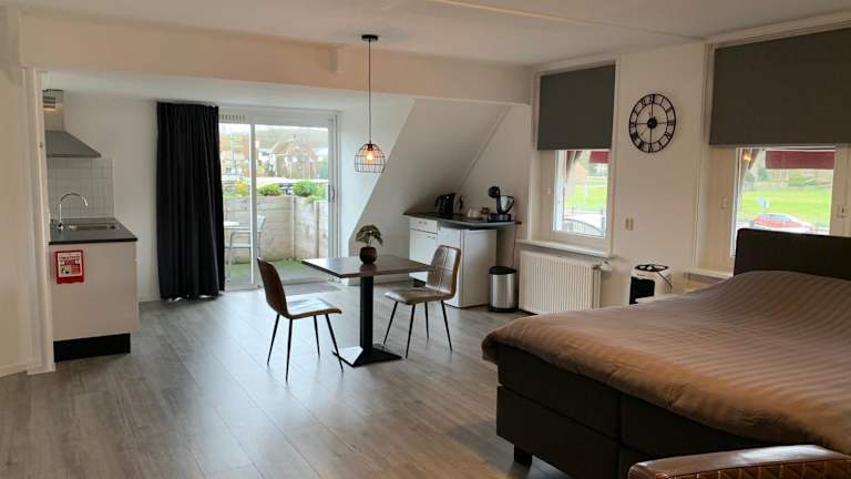 Die Unterkünfte im Slapen bij de Buurvrouw sind gemütlich und komfortabel eingerichtet. Jedes Zimmer verfügt über einen eigenen Sitzbereich mit einem Flachbild-TV und ein eigenes Badezimmer mit kostenfreien Pflegeprodukten, einem Haartrockner und einer Dusche. Zur Ausstattung gehören außerdem ein Kühlschrank, eine Kaffeemaschine und ein Wasserkocher, um Ihren Aufenthalt so angenehm wie möglich zu gestalten.