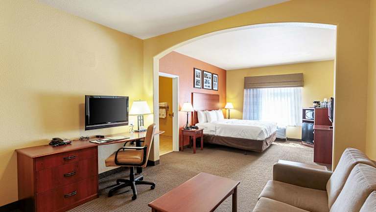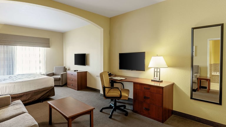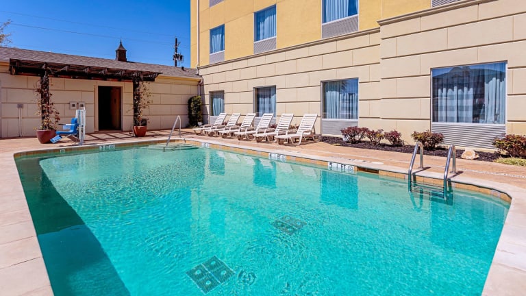 Die Unterkunft Sleep Inn & Suites Tyler South bietet moderne und komfortable Übernachtungsmöglichkeiten. Das Hotel verfügt über 79 Nichtraucherzimmer, einen saisonalen Aussenpool sowie einen Wellnessbereich mit Whirlpool. Das freundliche Personal ist rund um die Uhr an der Rezeption präsent und steht den Gästen bei allen Fragen zur Verfügung. Weitere Annehmlichkeiten umfassen einen Aufzug, einen Businesscenter, einen Konferenzraum und eine Münzwäscherei. Ausserdem stehen den Gästen kostenfreies Wifi und Zeitungen zur Verfügung.