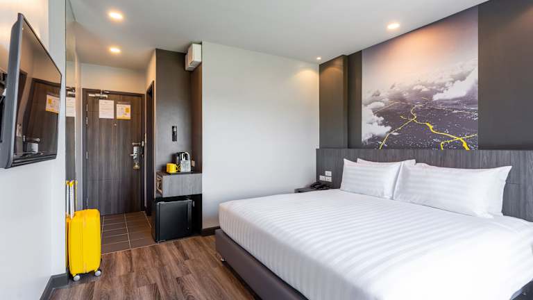 Die Zimmer sind klimatisiert und verfügen über ein Queensize- oder Kingsize-Bett. Ausgestattet sind die Zimmer mit einem Safe, einem Schreibtisch, einem Kühlschrank und einer Tee-/Kaffeemaschine. Ein Flachbild-TV mit Satellitenkanälen, kostenloses WiFi, ein Haartrockner sowie Kosmetikartikel sind vorhanden. Einige Zimmer bieten zusätzlich einen Balkon und Stadtblick.