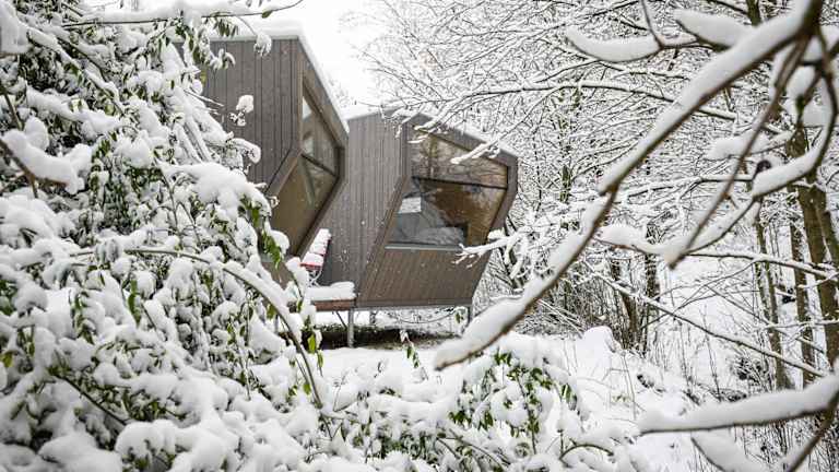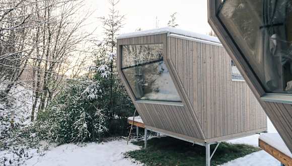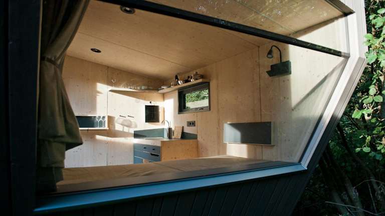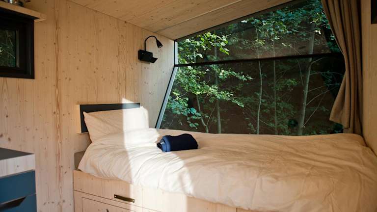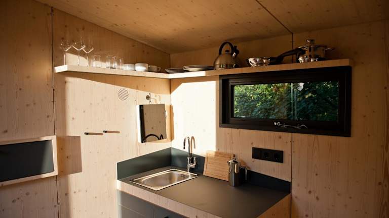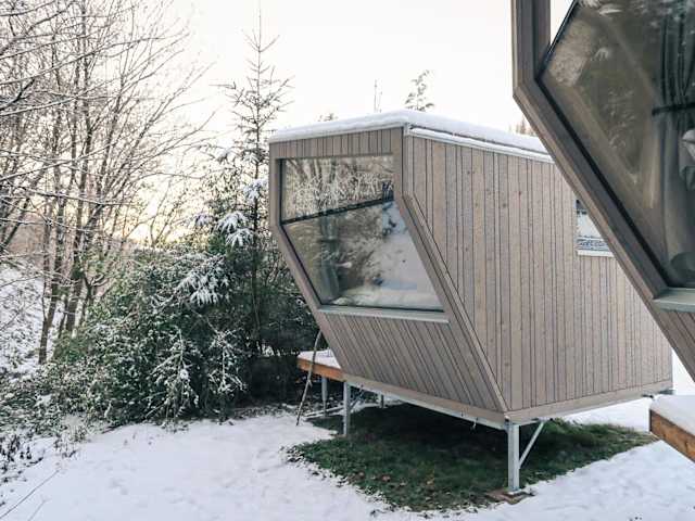 Das Sleep Space 23 - Green Tiny Village Harz bietet Übernachtungsmöglichkeiten in einem heimeligen Ferienhaus mit Aussicht auf Berg und Fluss. Es ist ideal für Feriengäste, die Ruhe und Natur suchen.