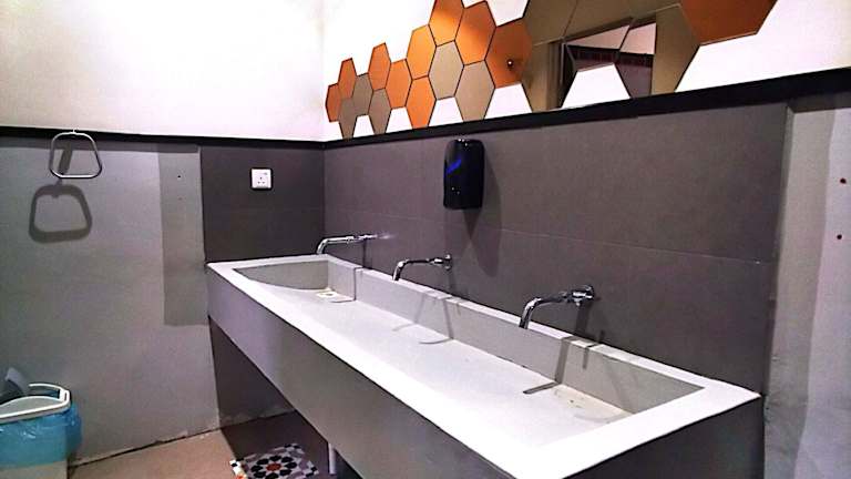 Die sanitären Einrichtungen sind für Frauen und Männer getrennt. Sie sind mit Warmwasserduschen, Handseife und Haartrockner ausgestattet.