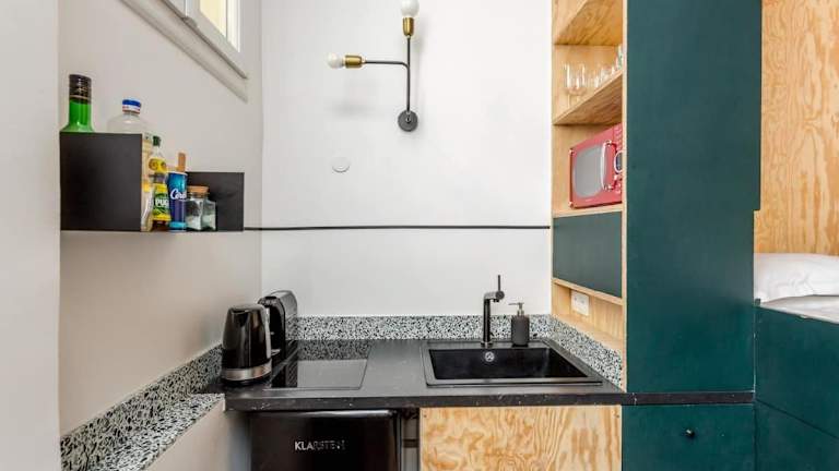 SLEEPOO - Cocooning 6 ist eine moderne Ferienwohnung, die mit einem Wohnzimmer, einer voll ausgestatteten Küche und zwei Schlafzimmern ausgestattet ist. Es steht eine rund um die Uhr besetzte Rezeption zur Verfügung, an der die Mitarbeitenden in mehreren Sprachen, darunter Deutsch, Englisch, Spanisch und Französisch, kommunizieren.