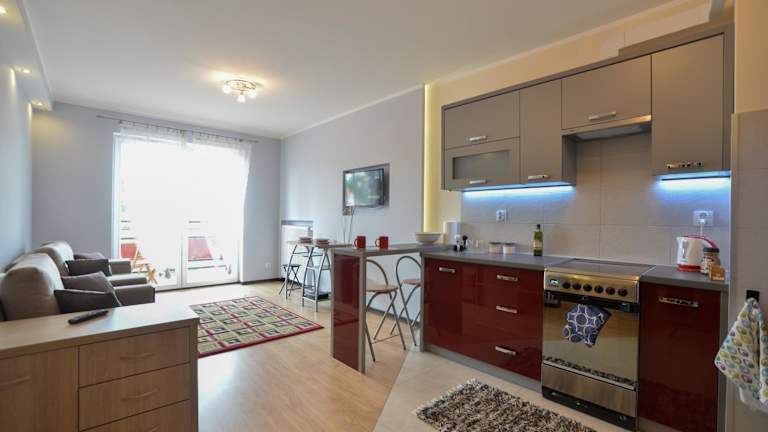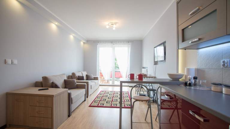 Słoneczny Apartament besticht durch seinen Gartenblick und bietet Übernachtungsmöglichkeiten mit einer Veranda/Patiobereich. Die Ferienwohnung ist mit einem Schlafzimmer und einem Badezimmer ausgestattet. Die Unterkunft ist eine Nichtraucherunterkunft, die von einem privaten Gastgeber geführt wird und weder Junggesellen- noch Junggesellinnenabschiede oder ähnliche Feiern erlaubt.