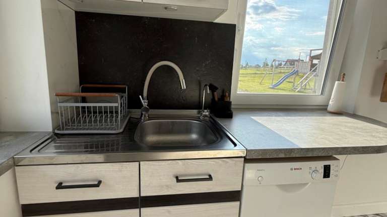 Das Ferienhaus umfasst ein Schlafzimmer und ist mit einer Küche ausgestattet, die über einen Kühlschrank und einen Geschirrspüler verfügt. Zu den Annehmlichkeiten gehören auch ein Flachbild-TV, ein Sitzbereich sowie ein Badezimmer mit Dusche. Die Unterkunft bietet Platz für Familien, da auch Zusatzausstattungen wie ein Zustellbett und ein Babybett verfügbar sind.