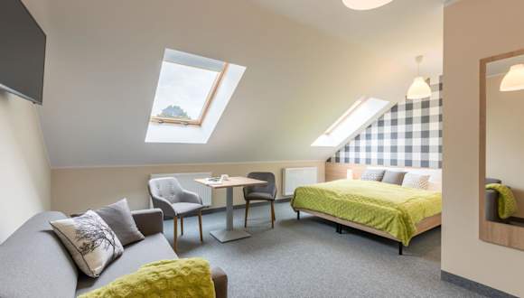 Słoneczny Zakątek hat kostenloses Wifi und eine kostenlose Parkiermöglichkeit. Zudem steht eine Terrasse zur Verfügung, die den Gästen eine heimelige Atmosphäre bietet.