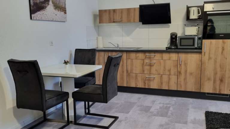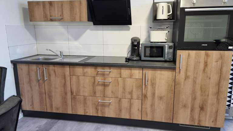 Die Ferienwohnung besteht aus einem separaten Schlafzimmer, einer voll ausgestatteten Küche mit Kühlschrank und Ofen sowie einem Badezimmer. Handtücher und Bettwäsche werden zur Verfügung gestellt.