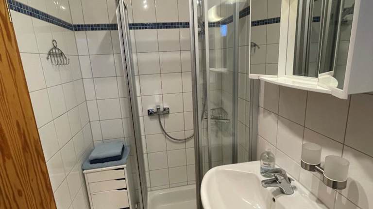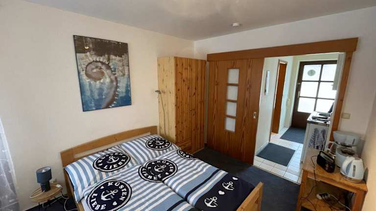 Die Ferienwohnung verfügt über 1 Schlafzimmer, eine voll ausgestattete Küchenzeile mit Kühlschrank sowie 1 Badezimmer mit Dusche und Haartrockner. Handtücher und Bettwäsche werden bereitgestellt.