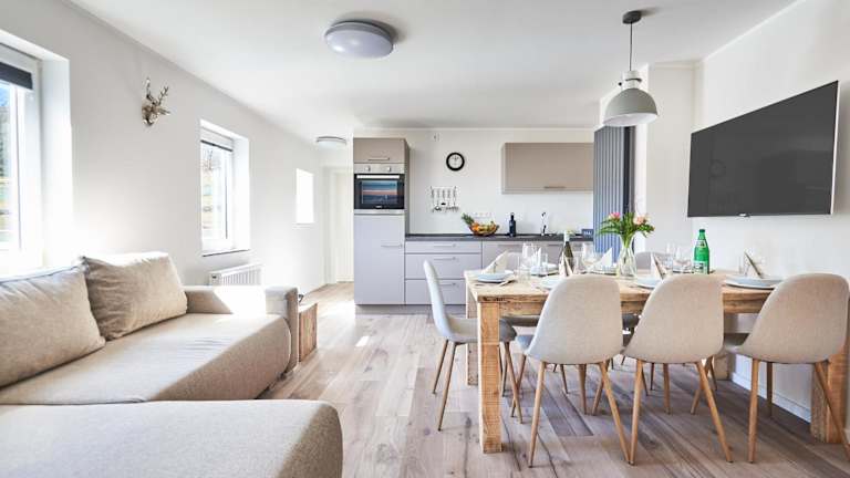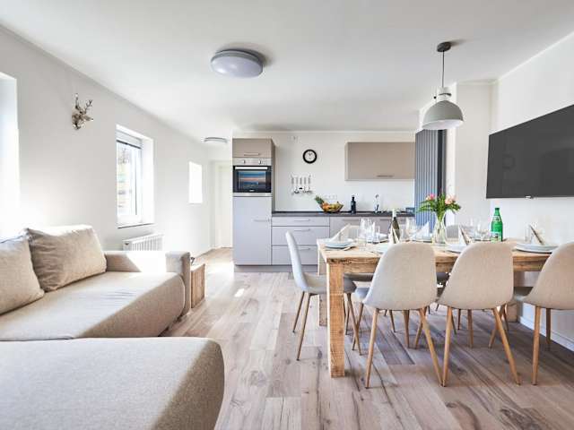 Smart Resorts Haus Saphir Ferienwohnung 504 ist eine heimelige Ferienwohnung, die ein geselliges Ambiente für Familien und kleinere Gruppen bietet. Die Unterkunft verfügt über einen Garten sowie einen kostenlosen Privatparkplatz für die Gäste.