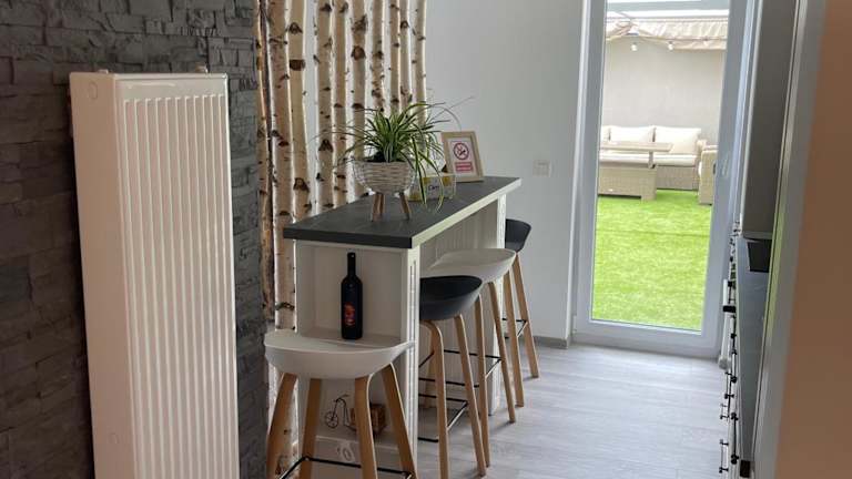 Die Ferienwohnung verfügt über ein Schlafzimmer sowie eine voll ausgestattete Küche. Eine Terrasse ist vorhanden, und kostenloser Privatparkplatz steht zur Verfügung. Die Unterkunft ist mit einem Aufzug ausgestattet und bietet zudem Annehmlichkeiten wie Klimaanlage und Internetverbindung.