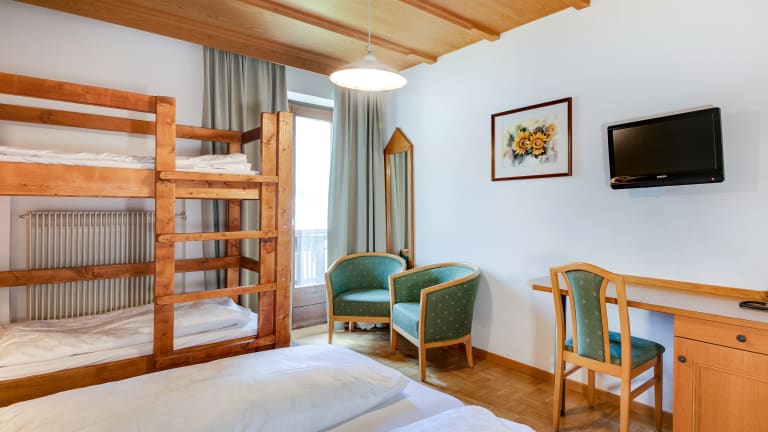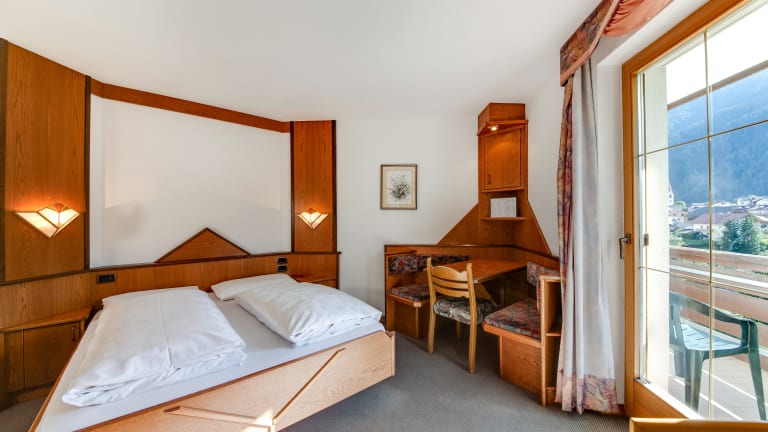 Die Zimmer sind mit Heizung und einem Balkon oder einer Terrasse ausgestattet, von wo aus die Gäste einen herrlichen Bergblick geniessen können. Zu den Annehmlichkeiten gehören ein Doppelbett, ein Queensize-Bett oder ein Sofabett, sowie ein Safe und eine Minibar. Zudem sind die Zimmer mit einem Telefon, einem Sat-TV und WiFi ausgestattet. Die Badezimmer verfügen über eine Dusche und eine Badewanne, sowie über einen Haartrockner und ein weiteres Telefon. Es finden sich sowohl Familien- als auch Nichtraucherzimmer.