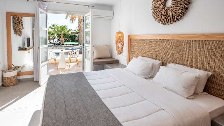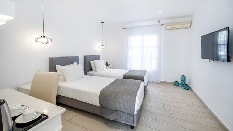Die Zimmer sind ausgestattet mit einer Klimaanlage, Heizung, einem Balkon mit Meerblick, einem Queensizebett und einem Sofabett. Ein Minikühlschrank sowie eine Tee-/Kaffeemaschine sind vorhanden. Zur Ausstattung gehören zudem ein Telefon mit Direktwahl, ein TV-Gerät, ein Radio und kostenfreies WLAN. Die Badezimmer verfügen über eine Dusche und eine Badewanne sowie einen Haartrockner.
