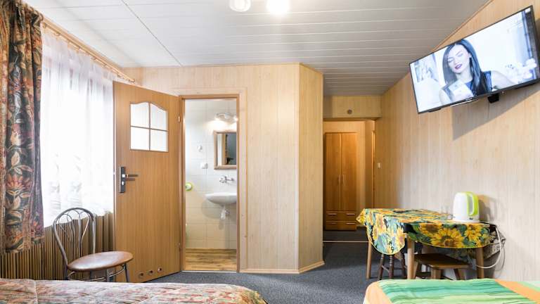 Das Smyrecek-centrum Bukowiny bietet Privatzimmer mit kostenlosem Wifi und Parkiermöglichkeiten. Zur Ausstattung gehören ein Fernseher mit Smart-TV-Funktion und Video-on-Demand sowie Mobiliar wie ein Tisch und Stühle. Es gibt einen Garten mit Grillmöglichkeiten sowie einen Kinderspielplatz, ideal für Familien.