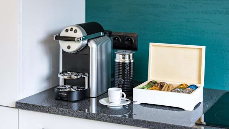 In jeder Wohneinheit steht eine voll ausgestattete Küche zur Verfügung, die einen Esstisch, einen Kühlschrank, einen Geschirrspüler, einen Ofen, eine Kaffeemaschine und einen Wasserkocher beinhaltet. Es gibt Grillmöglichkeiten im Garten, ideal für gemütliche Grillabende.