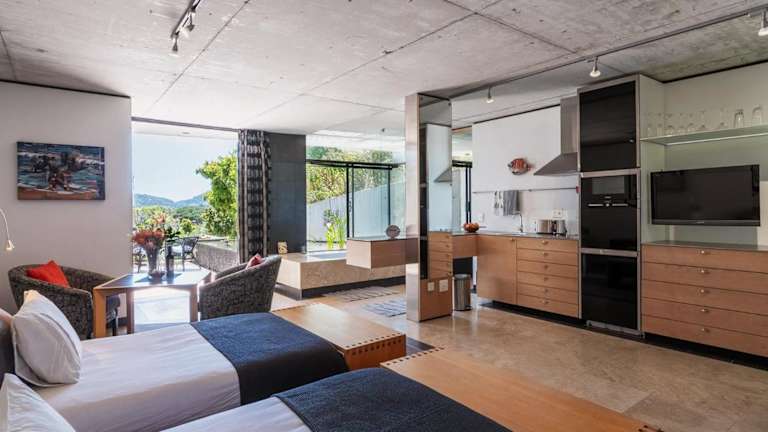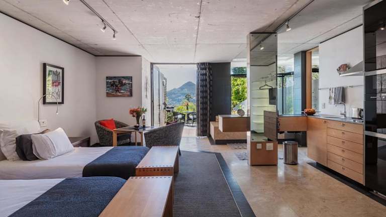 Die Zimmer im Snooze in Hout Bay sind mit einer modernen Küchenzeile, einem Flachbild-TV und einem offen geschnittenen Bad mit Badewanne ausgestattet. Die Glastüren führen zu einem privaten Garten mit Grillmöglichkeiten. Die ruhigen und schallisolierten Zimmer sorgen für eine angenehme Atmosphäre während des Aufenthalts.