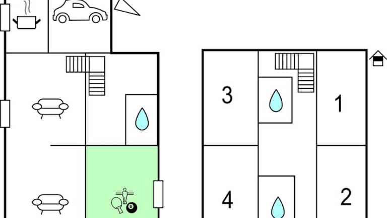 Das Ferienhaus verfügt über 4 Schlafzimmer, ein Wohnzimmer und eine voll ausgestattete Küche mit Kühlschrank und Kaffeemaschine. Zudem sind 3 Badezimmer vorhanden, die jeweils mit Dusche und Badewanne ausgestattet sind. Die gesamte Unterkunft ist mit kostenlosem WLAN ausgestattet und bietet Platz für eine angenehme Ferienatmosphäre.