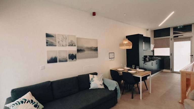 Die Ferienwohnung in der Social Lodge - Piornais ist klimatisiert und bietet bequeme Sitzplätze sowie eine gut ausgestattete Küche mit Kühlschrank. Zur Ausstattung gehören auch ein Flachbild-TV mit Kabelanschluss sowie Handtücher und Bettwäsche.