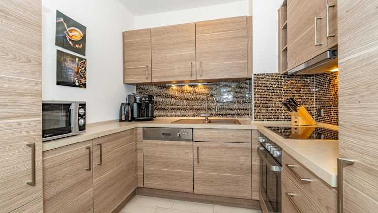 Die Ferienwohnung umfasst 2 Schlafzimmer und ist mit einem TV sowie einer voll ausgestatteten Küche ausgestattet. Zur Küche gehören Kühlschrank, Geschirrspüler, Waschmaschine, Ofen und Mikrowelle. Handtücher und Bettwäsche werden ebenfalls bereitgestellt.