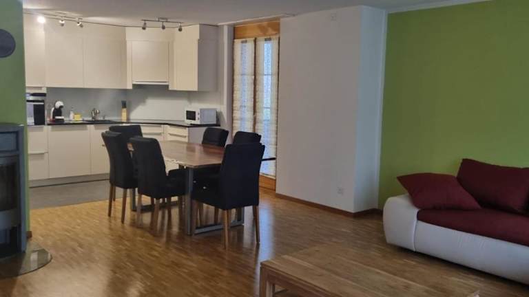 Die Ferienwohnung ist ausgestattet mit 3 Schlafzimmern und 2 Badezimmern. Zur Einrichtung gehören Bettwäsche und Handtücher. Ein Flachbild-TV, ein Essbereich und eine voll ausgestattete Küche sind ebenfalls vorhanden. Der Balkon bietet einen schönen Bergblick.