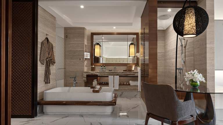 Die Zimmer im Sofitel Bali Nusa Dua Beach Resort sind geräumig und bieten modernen Komfort. Jedes Zimmer ist klimatisiert und verfügt über einen Flachbild-Sat-TV, eine Minibar, einen Sitzbereich und eine Terrasse. Im eigenen Badezimmer finden Sie eine Dusche, eine Badewanne und einen Haartrockner. Ein Wasserkocher und eine Kaffeemaschine stehen im Essbereich zur Verfügung. WLAN nutzen Sie in allen Zimmern kostenfrei.