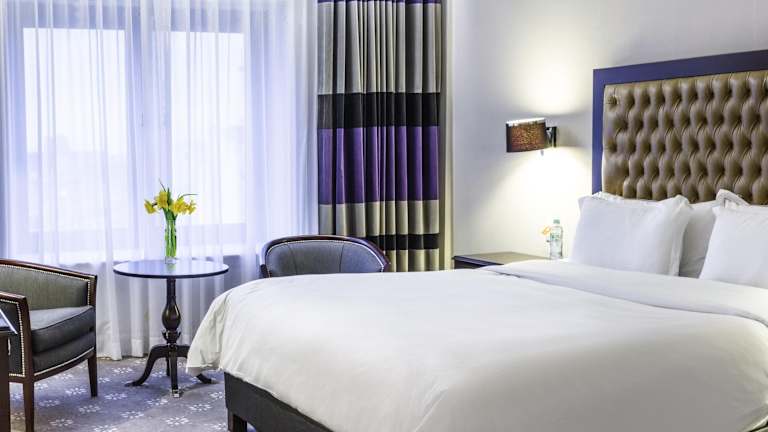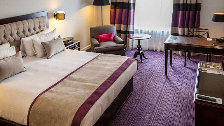 Die klimatisierten Zimmer sind mit einem Flachbild-Sat-TV, einer Minibar, Teppichböden, stilvollen Mahagonimöbeln sowie Marmorarmaturen ausgestattet. Zu den Annehmlichkeiten gehören ein Safe, eine Tee-/Kaffeemaschine, ein Bügelset, ein Telefon mit Direktwahl, ein TV-Gerät mit Satellitenempfang und WiFi (gegen Gebühr). Die Badezimmer verfügen über eine Dusche, eine Badewanne und ein Bidet und sind mit Haartrocknern und Bademänteln ausgestattet.
