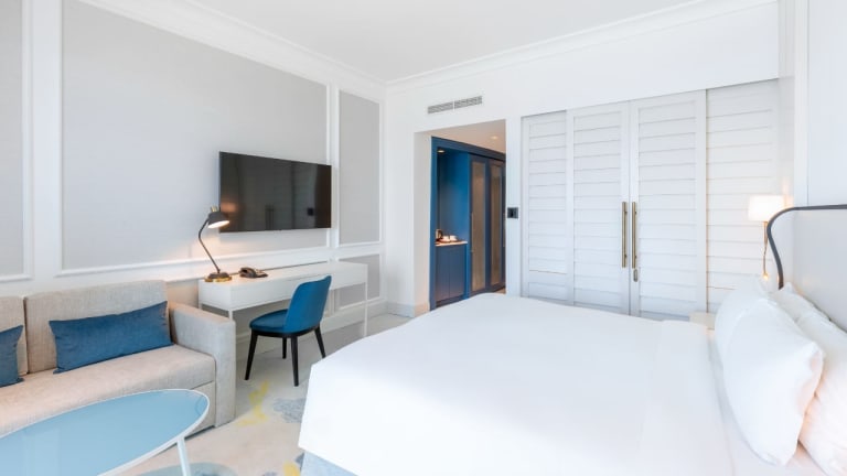 Die elegante und renovierte Einrichtung der Zimmer und Suiten verfügt über eine Kombination aus französischer “art de recevoir”und arabischem Dekor, welches durch seine warmen Farben, seine modernen und seine nahöstlichen Motive, die Mysterien des Orients in Erinnerung ruft. Jedes Zimmer verfügt über einen privaten Balkon mit Ausblick über den arabischen Golf, einen modernen Flat-Screen TV, eine Soundanlage und eine Minibar. Auf Nachfrage bieten wir Ihnen auch gerne Zimmer für Gäste mit Behinderungen an.