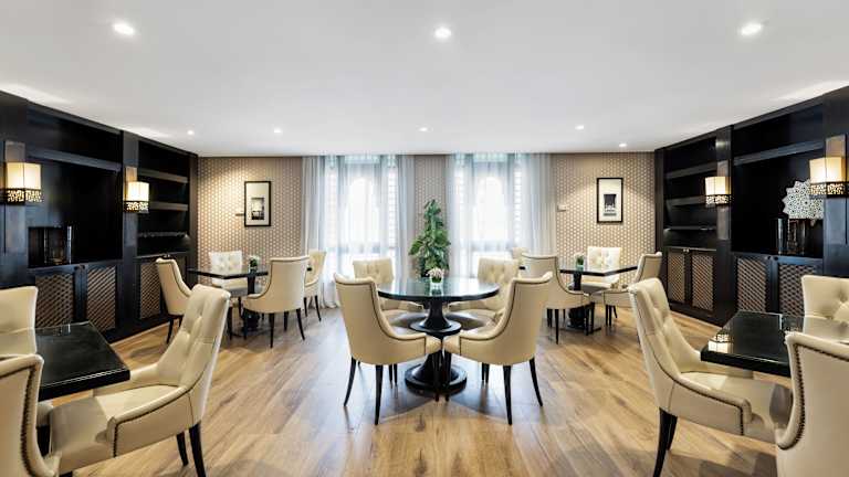 Das Hotel bietet verschiedene gastronomische Einrichtungen, darunter ein Restaurant, ein Café und eine Bar. Gästen steht ein vielseitiges Frühstücksbuffet, sowohl kontinental als auch arabisch, zur Verfügung. Für Kinder werden spezielle Menüs angeboten. Das Restaurant Arabesque serviert Afternoon Tea und eine Auswahl internationaler Speisen.