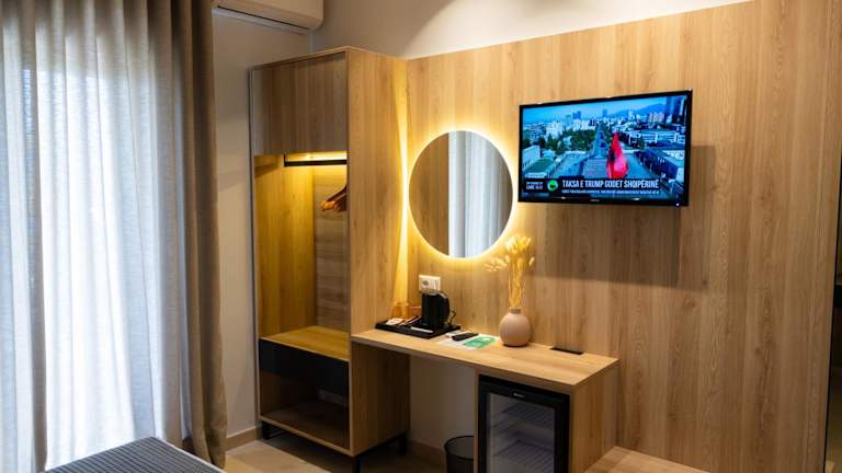 Die Zimmer im Sofo Hotel Dhermi sind mit einem Kleiderschrank, einem Schreibtisch, einer Klimaanlage sowie einem Flachbild-TV ausgestattet. Einige Zimmer bieten zudem einen Balkon. Es sind Nichtraucherzimmer verfügbar.
