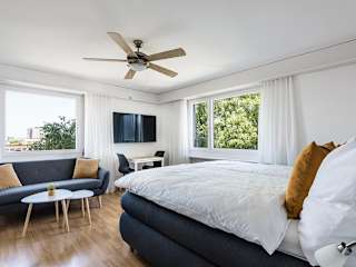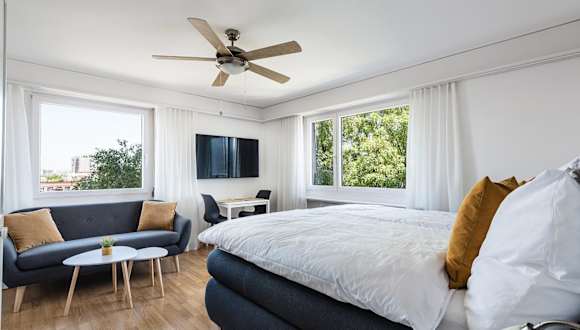 Das SOHO 5B befindet sich in Kreuzlingen, nur 1,7 km entfernt vom Hauptbahnhof Konstanz. Die Ferienwohnung bietet eine ruhige Lage mit Gartenblick, ideal für entspannte Ferien am Bodensee. In der Nähe befinden sich die Klosterinsel Reichenau sowie die Bodensee-Arena, die leicht zu erreichen sind.
