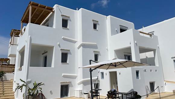 Die SOHOROS suites befinden sich in Schinoussa und bieten einen beeindruckenden Blick auf das Meer.
