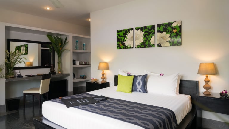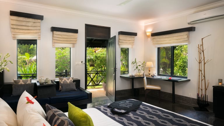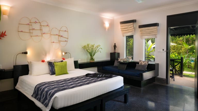 Die Zimmer sind mit Klimaanlage und Ventilator ausgestattet, zudem verfügen die meisten über einen Balkon. Weitere Annehmlichkeiten umfassen einen Safe, eine Minibar, einen Schreibtisch, einen Minikühlschrank sowie eine Tee- und Kaffeemaschine. Ein Flachbildschirmfernseher mit Satellitenempfang ist ebenfalls vorhanden. Die Badezimmer sind mit Dusche und Badewanne ausgestattet und bieten einen Haartrockner sowie Bademäntel. Hausschuhe sorgen für zusätzlichen Komfort.