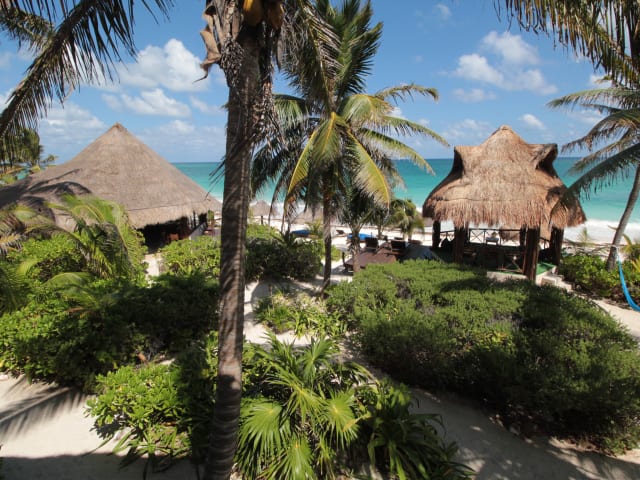 Sol Caribe liegt 7km vor dem kleinen idyllischen Fischerdörfchen Punta Allen. Wir haben daher ein Restaurant im Hotel in dem wir Frühstück, Mittagessen und Abendessen für unsere Gäste servieren.