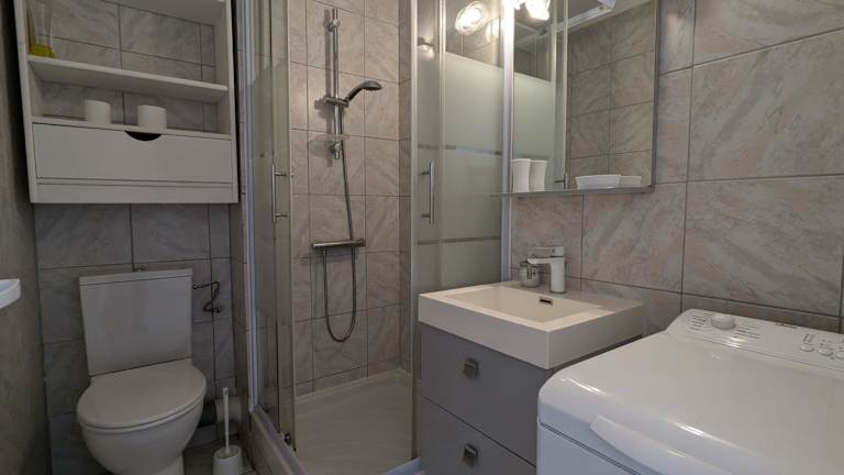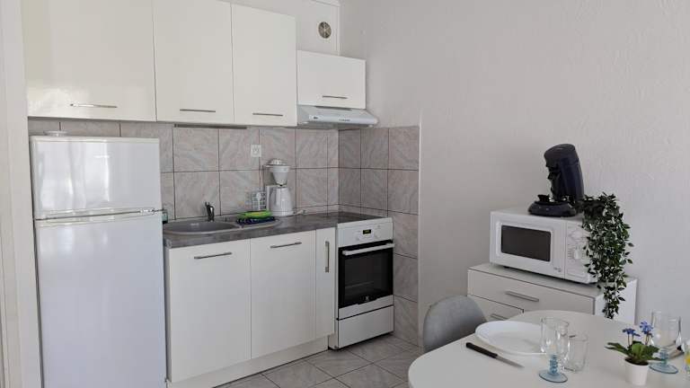 Die Ferienwohnung verfügt über ein Schlafzimmer, ein Wohnzimmer und ein Badezimmer mit Dusche. Die Küchenzeile ist mit einem Kühlschrank und einem Ofen ausgestattet. Auf Wunsch können Handtücher und Bettwäsche gegen Aufpreis bereitgestellt werden.