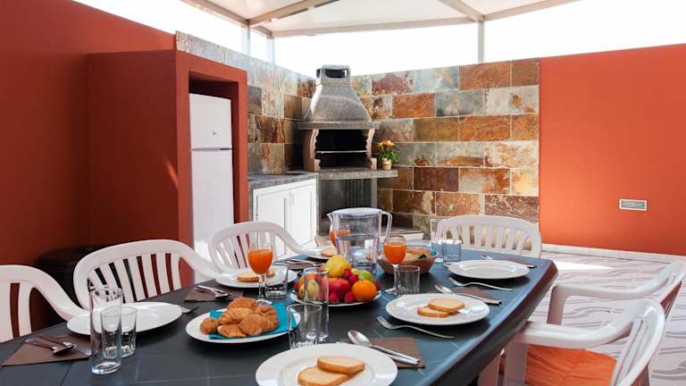 Die Villa bietet Platz in 4 Schlafzimmern, einem Wohnzimmer sowie einer voll ausgestatteten Küche mit Kühlschrank und Kaffeemaschine. Es sind 3 Badezimmer mit Dusche und Haartrockner vorhanden. Handtücher und Bettwäsche werden bereitgestellt.