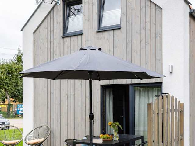 Die Unterkunft Solo na wyspie, domki blisko morza Sobieszewo bietet eine einladende Atmosphäre mit einem schönen Garten und einer Terrasse. Die Einrichtung ist heimelig und sorgt für eine angenehme Aufenthaltsqualität.