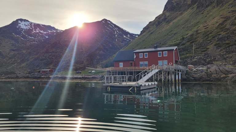 Die Unterkunft befindet sich in Sennesvik, einer malerischen Gegend der Lofoten, umgeben von Natur und nahe am Wasser. In der Nähe gibt es Möglichkeiten zum Wandern und Angeln.