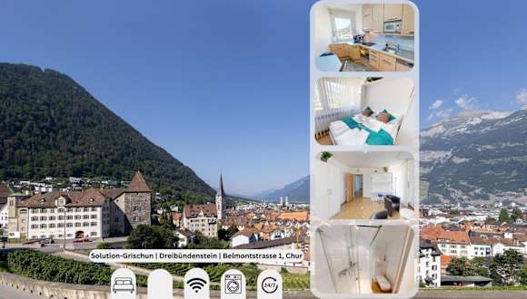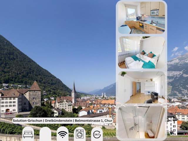 Die Solution-Grischun Apartments bieten eine atemberaubende Aussicht und befinden sich in einer zentralen Lage in Chur. Die Unterkunft ermöglicht Gästen einen angenehmen Aufenthalt mit verschiedenen Annehmlichkeiten und bietet eine heimelige Atmosphäre.