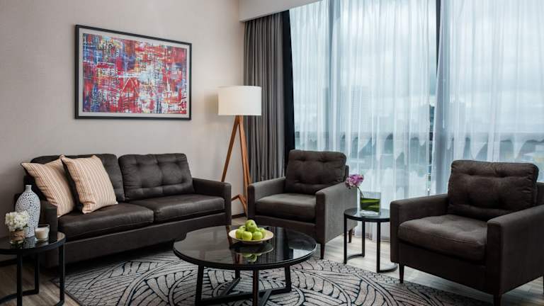 Die Zimmer sind modern eingerichtet und verfügen über ein Wohnzimmer, eine Kochnische mit Kühlschrank, Herd, Mikrowelle und Tee-/Kaffeekocher sowie separate Schlafzimmer. Für ein behagliches Raumklima sorgen eine klimatisierte und individuell steuerbare Klimaanlage. Die Zimmer sind mit einem Flachbild-Sat-TV, einem Safe, einem Schreibtisch und einer Auswahl an Handtüchern ausgestattet. Das eigene Bad hat eine Dusche und eine Badewanne, inklusive Haartrockner und kostenlose Pflegeprodukte.