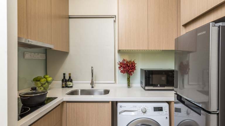 In den Zimmern steht eine Küche sowie ein Badezimmer zur Verfügung. Die Ausstattung umfasst Klimaanlage, Balkon und ein separates Schlafzimmer. Zudem sind ein Safe, Schreibtisch und Fernseher vorhanden. Die Kochnische ist mit einem Kühlschrank, Herd und Mikrowelle ausgestattet. Das Badezimmer ist mit Dusche und Badewanne sowie Haartrockner bestückt.