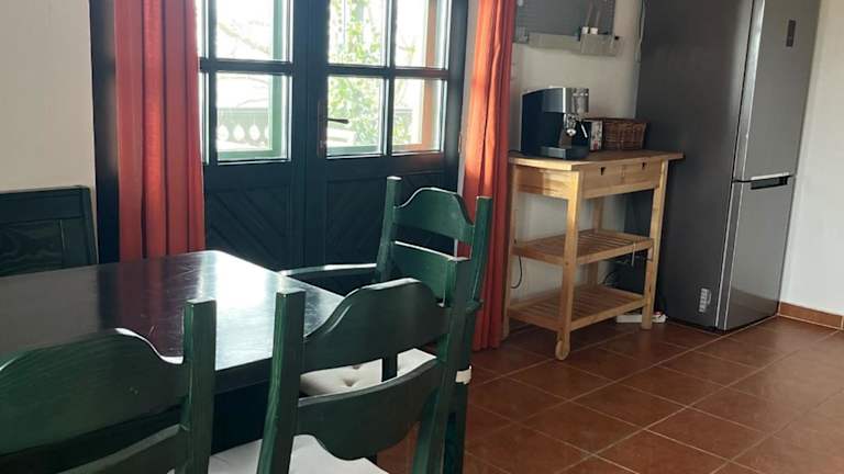Das Landhaus besteht aus 2 Schlafzimmern, einem Wohnzimmer und einer voll ausgestatteten Küche mit Kühlschrank und Kaffeemaschine. Es gibt 2 Badezimmer mit Dusche und Haartrockner. Handtücher und Bettwäsche werden bereitgestellt, und eventuell kann die Bettwäsche auf Anfrage gewechselt werden.