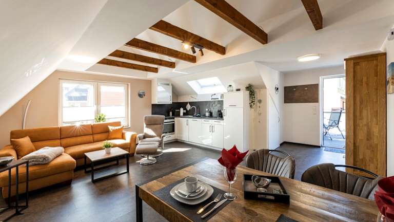 In der voll ausgestatteten Küche der Ferienwohnung stehen Annehmlichkeiten wie Kühlschrank, Geschirrspüler, Waschmaschine, Ofen und Mikrowelle zur Verfügung. Es sind keine Informationen zur Verpflegung vor Ort angegeben, daher ist Selbstversorgung erforderlich.