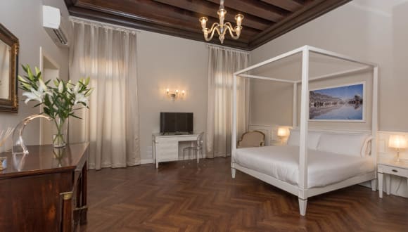 Das 4 Sterne Hotel, liegt im Sestiere Dorsoduro, die feine Gegend von Venedig, nur wenige Schritte von der Kirche Madonna della Salute und das Peggy Guggenheim Museum. Nur 1 Haltestelle mit dem Boot vom Markusplatz oder 15 Minuten zu Fuß. Nach einer größeren Renovierung, hat das Salute Palace Hotel einen neuen Gesicht: eine unvergessliche Atmosphäre in der Venedig absolute Schönheit. Das Hotel bietet 45 elegant eingerichtete Zimmer mit allen modernen Annehmlichkeiten ausgestattet, einen stilvolles Restaurant, einen Bar und einen schönen kleinen Garten. Ein realchtiges Frühstücksbuffet werden Sie einen guten Morgen wünschen. Im gesamten Hotel ist kostenloses WI-FI angeboten, und alle 45 Zimmer haben Klimaanlage, Minibar, LCD-Fernseher, Haartrockner, kostenlose Kosmetikartikel, Geldschrank, Schreibtisch zur Verfügung. Die Junior Suite und Deluxe Zimmer verfügt uber Wasserkocher mit Tee und Kaffee. Kleine Haustiere sind willkommen.