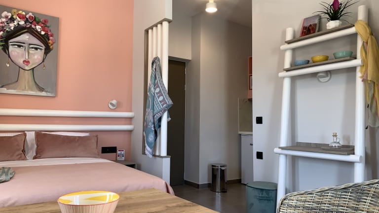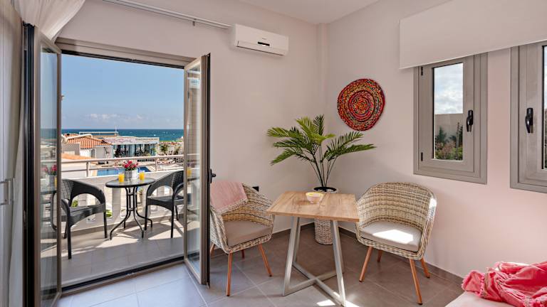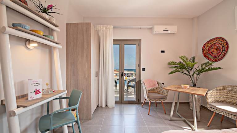 Die Apartments und Studios sind mit Holzmöbeln und hellen Farben eingerichtet und bieten eine Küchenzeile mit Kühlschrank, Kochplatten und Küchenutensilien. Die meisten Unterkünfte verfügen über einen Balkon oder eine Terrasse mit Blick auf das Meer oder den Garten. Jede Unterkunft ist mit Klimaanlage, individuell steuerbarer Heizung, einem Safe und einem Schreibtisch ausgestattet. Zur weiteren Ausstattung gehören ein Badezimmer mit Dusche und Badewanne sowie ein Haartrockner. WLAN ist in den Zimmern verfügbar.