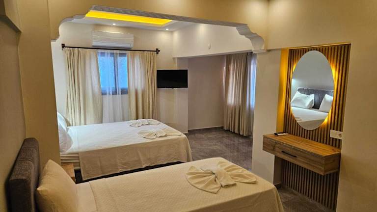 Im Sonmez Hotel finden Sie 24 komfortable Zimmer mit Klimaanlage, Minibar und eigenem Balkon. Das WLAN ist kostenlos und die Badezimmer verfügen über Duschen und Haartrockner.
