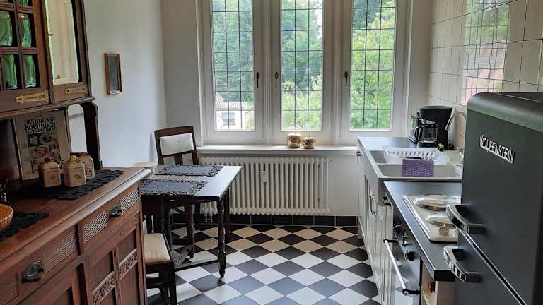 Die Unterkunft ist mit einer gut ausgestatteten Küche eingerichtet, die einen Kühlschrank, einen Geschirrspüler, einen Ofen, eine Kaffeemaschine und einen Wasserkocher umfasst.