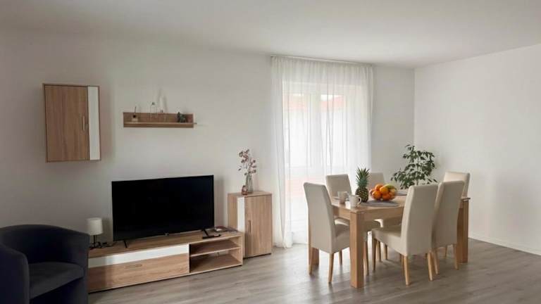 Die Ferienwohnung verfügt über zwei Schlafzimmer, ein Wohnzimmer und eine gut ausgestattete Küche. Weiterhin gibt es einen Flachbild-TV, der für Unterhaltung sorgt.