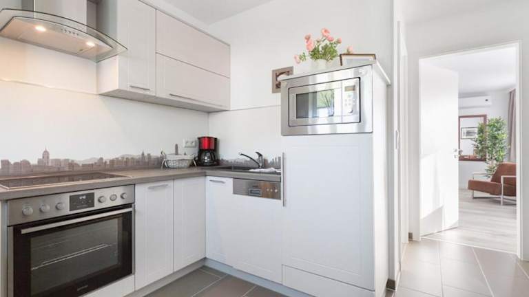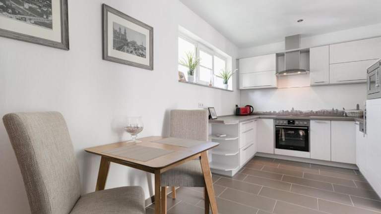 Die Ferienwohnung ist ausgestattet mit einem Schlafzimmer, einem Badezimmer, Bettwäsche, Handtüchern, einem Flachbild-TV mit Satellitenkanälen, einem Essbereich und einer voll ausgestatteten Küche.