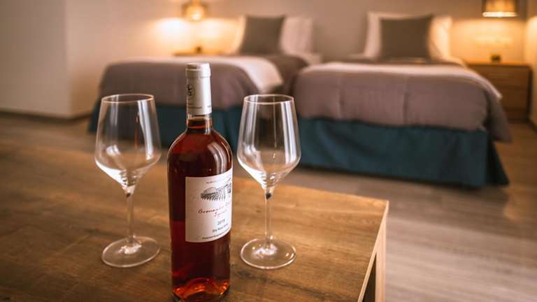 Essenslieferung in die Unterkunft ist möglich. Die Unterkunft bietet Wein und Sekt an und stellt sicher, dass alle Teller und Gläser desinfiziert wurden.
